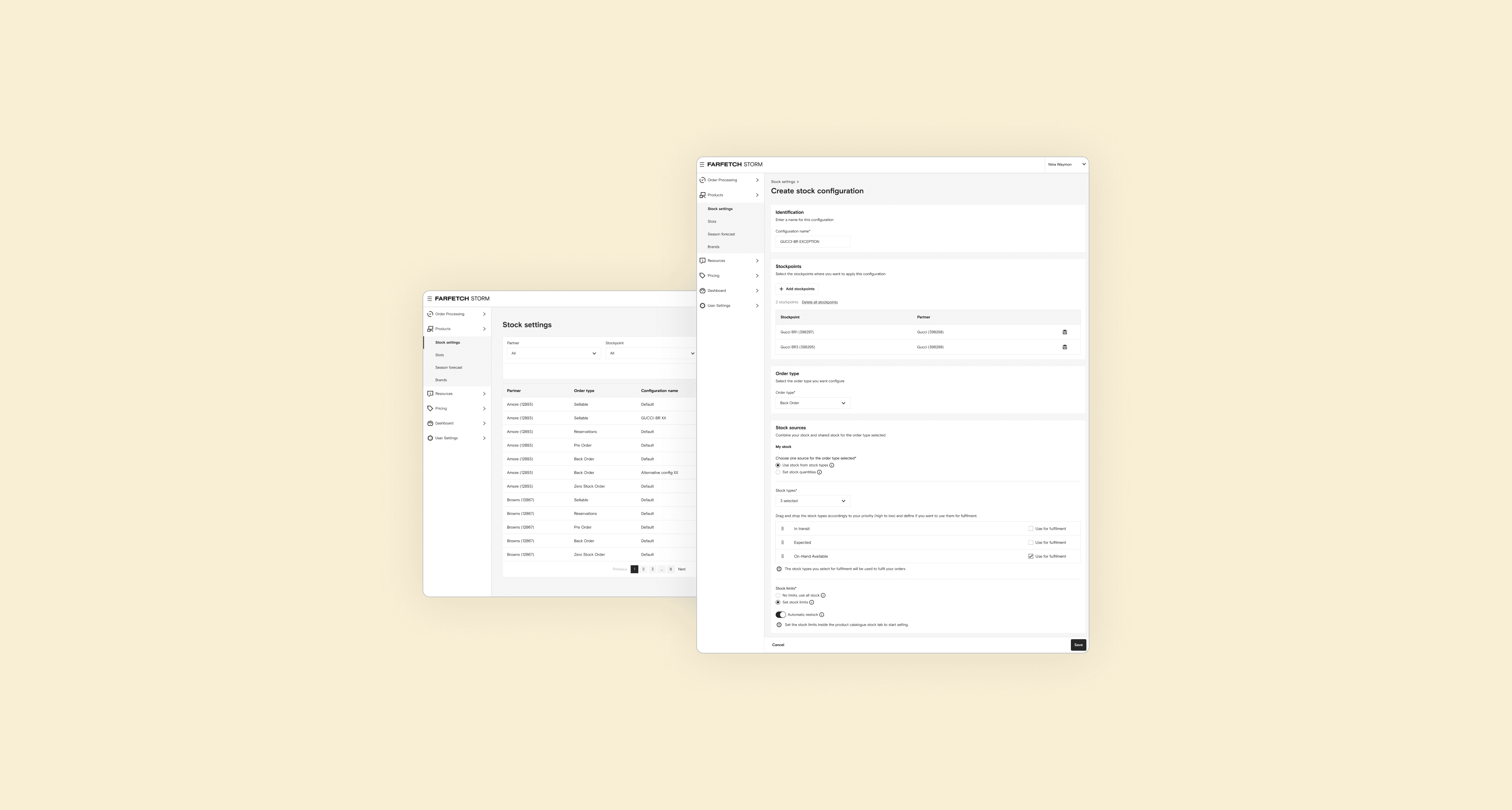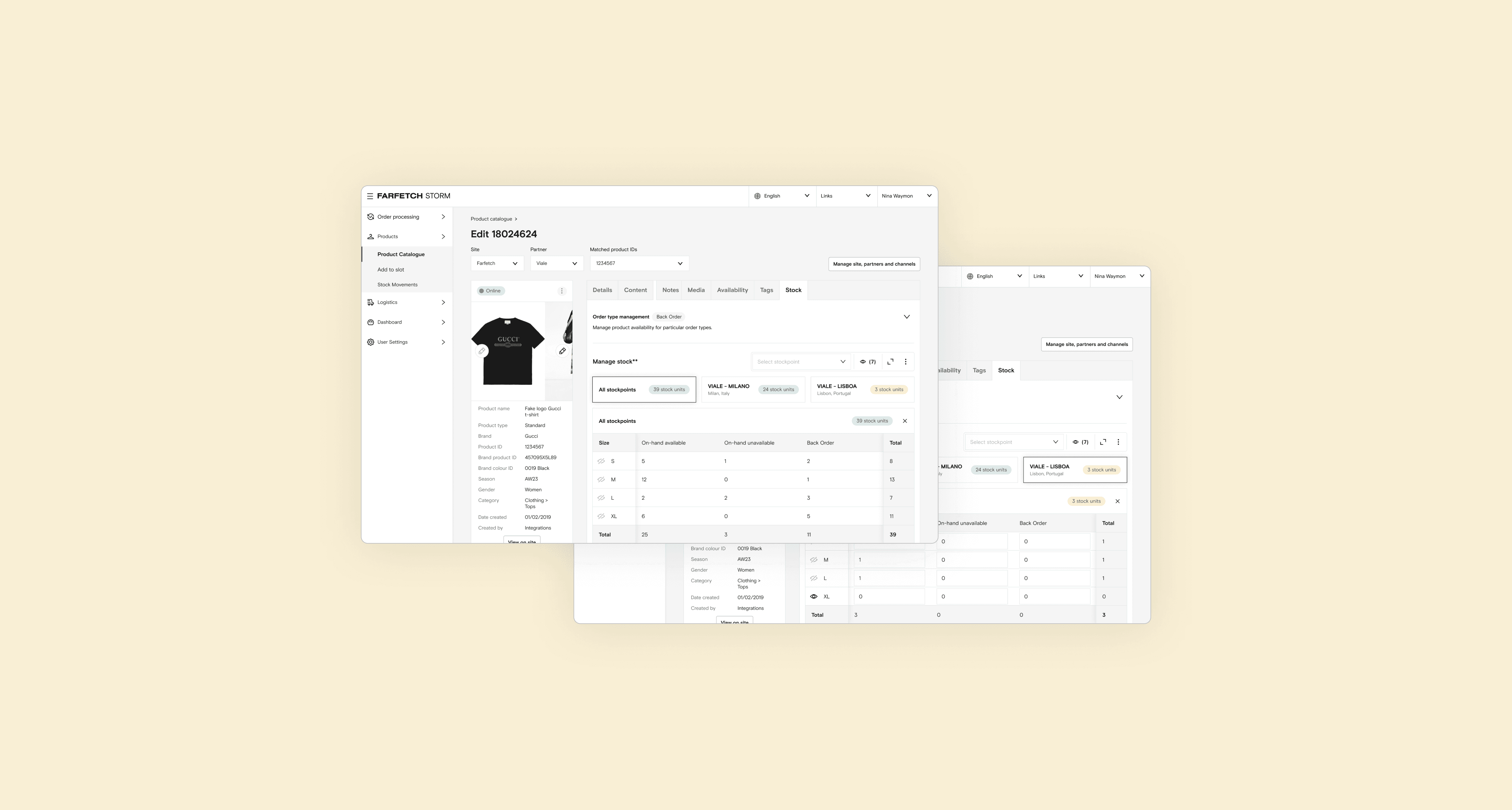 I worked on evolving Farfetch’s stock management platform to support backorders, enabling partners to sell products even when physical stock was unavailable. The tool is used by internal teams and marketplace partners to configure and manage inventory at scale within a complex B2B system.