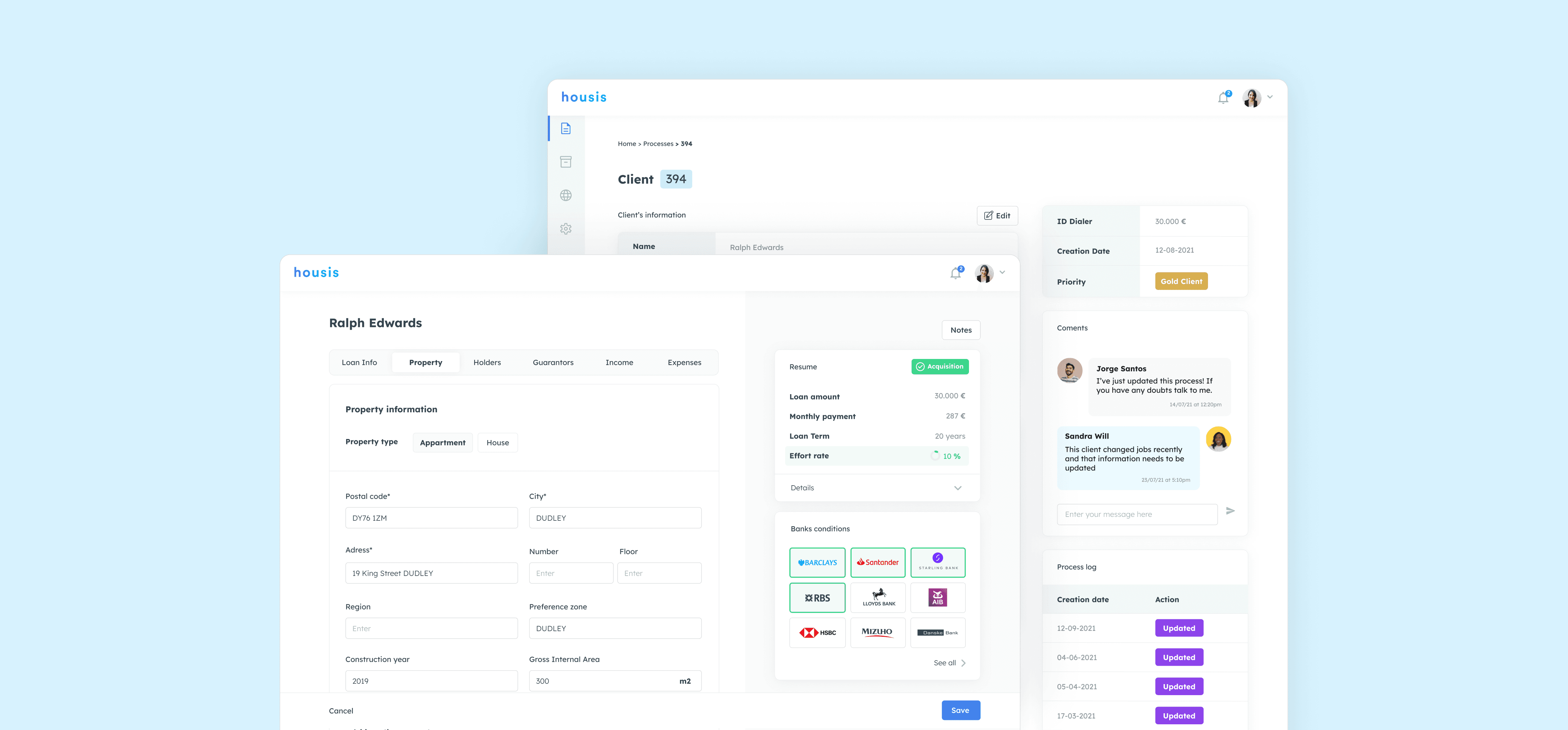 The platform was used daily by agents, analysts, and partner managers to collect client data, assess risk, and decide whether a process could be sent to banks